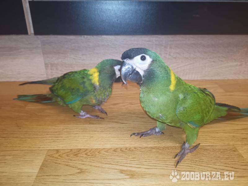 Popis: Letošní červnová mláďata ary žlutokrkého 1,1. Mláďata jsou od tří týdnů ručně dokrmována. Kroužkována s testy DNA. Obě mláďata jsou krotká a kontaktní. Pouze osobní předání v Praze nebo jsem schopný je dovézt. Popřípadě zařízení vlastní dopravy (např. Přivez zvíře). Mláďata nejsou z chovu ale od domácích papoušků, tudíž jsou zvyklá na domácí prostředí. Samec - 15000,- Samice - 22000,-