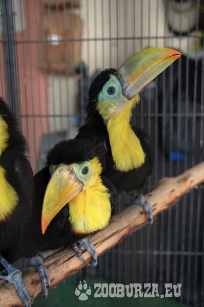 Popis: Unrelate young pair of Keel-Billed Toucans (Ramphastos sulfuratus) both hatched 2025 for sale. Very socialized birds that have been handfed. Close rings,CITES export/import documents, health certificates, DNA sexing, PBFD/avian disease testing, and owner transfer paperwork. Serious inquiries only.